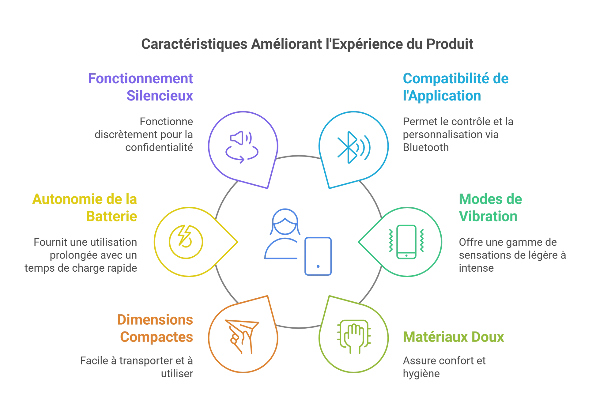 - Matériaux sûrs : silicone sans danger pour le corps et plastique ABS.