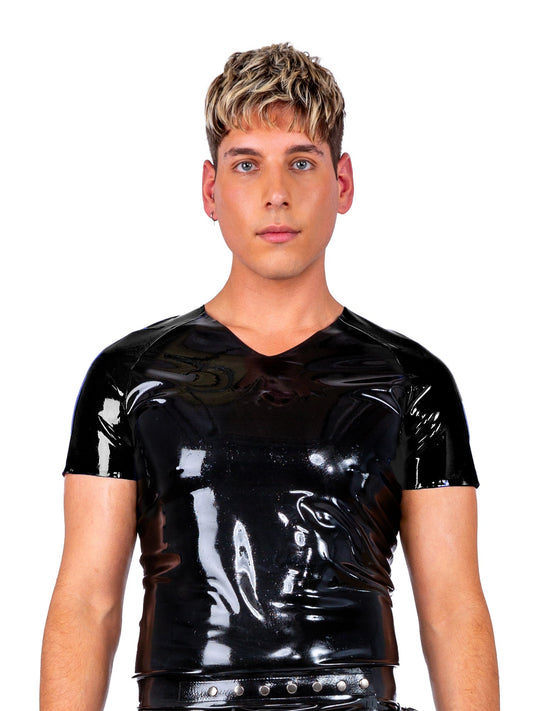Limited Edition - Black Latex/Rubber T-Shirt With Pink Front Stripes