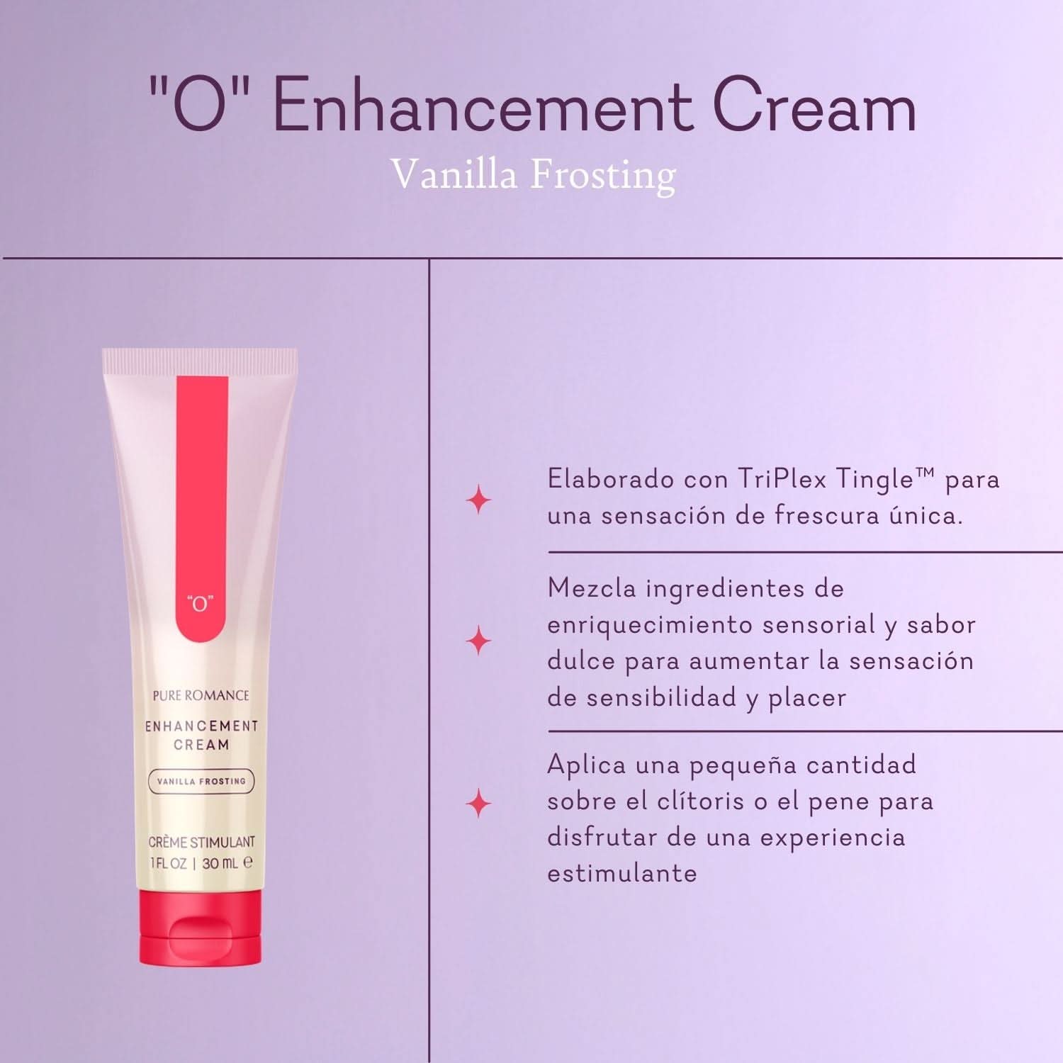 Normale prijsMake intimate moments together unforgettable with “O” Enhancement Cream. Powered by TriPlex Tingle™ for cool and exhilarating sensation, this is the most intense enhancement cream in the Pure Romance lineup. “O” blends sensory-enriching ingredients plus sweet flavor, essential oils, and menthol to help increase feelings of sensitivity and pleasure. Apply a pea-sized amount to the clitoris and/or penis to make it a night you and your partner won’t be able to stop talking about.